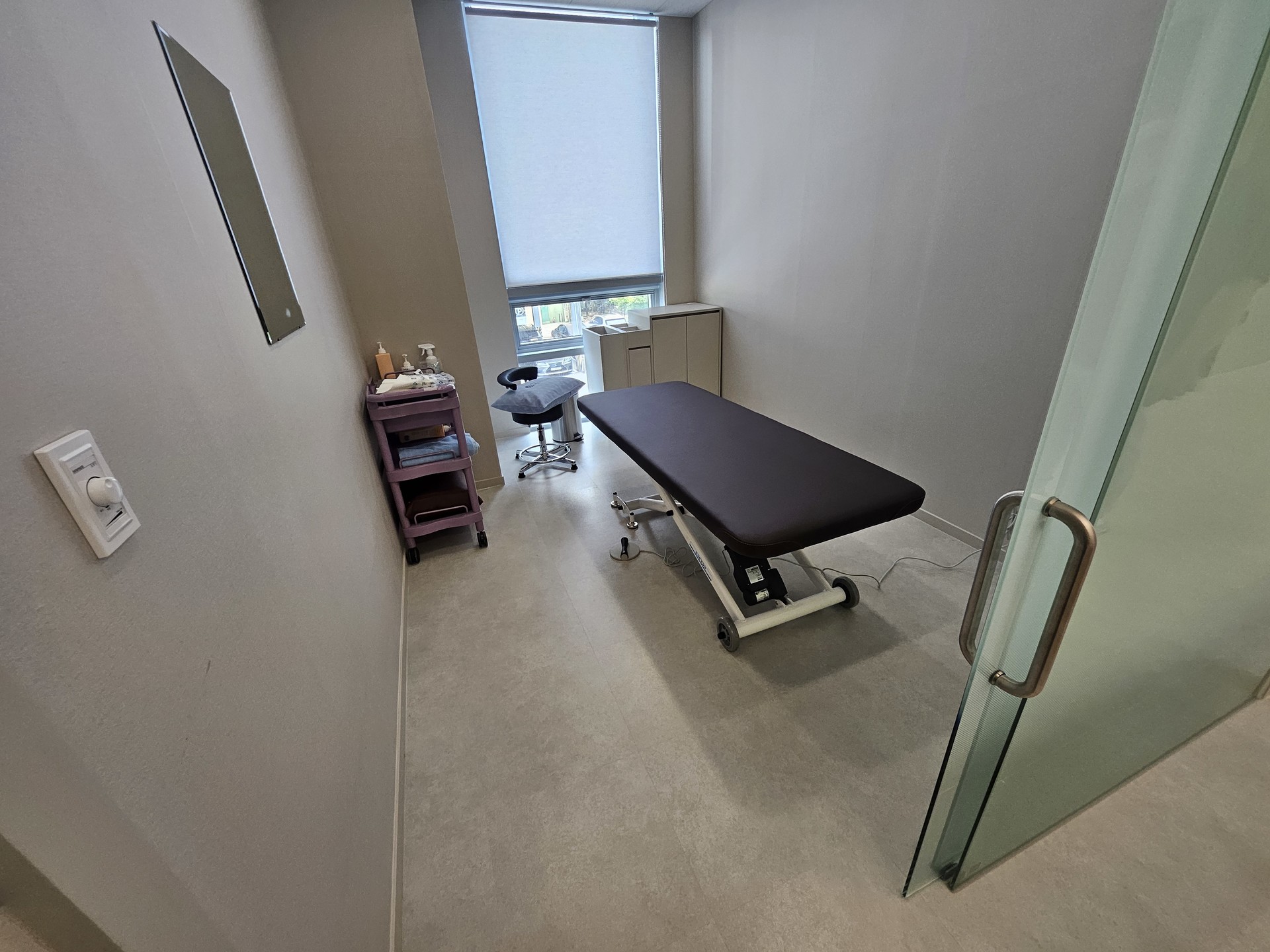 조절할 수 있어 치료자의 편의성을 높였습니다. 이동용 캐스터가 장착되어 있어 고정과 이동이 자유로워