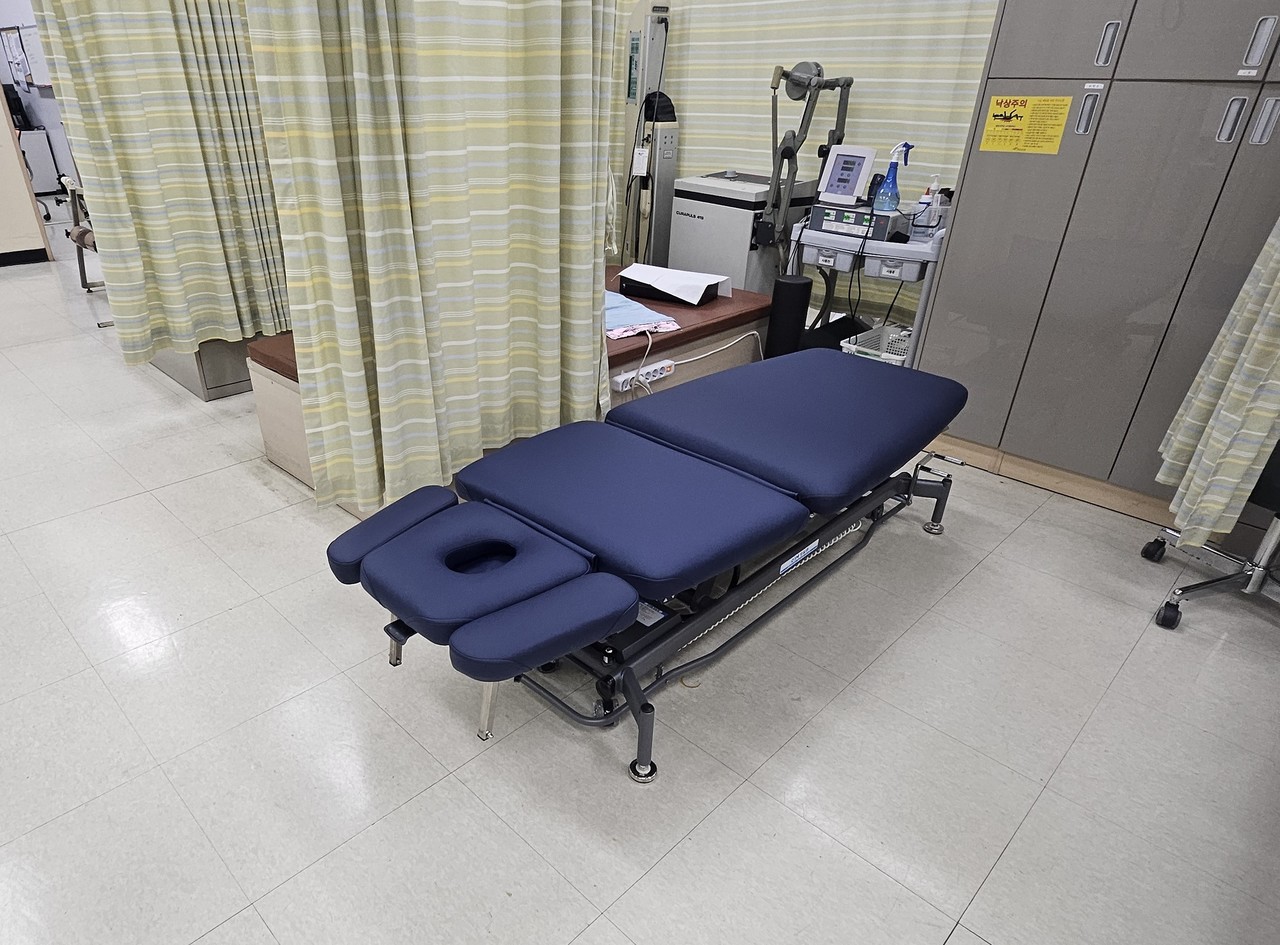 한림대학교 성심병원은 경기 서부권을 대표하는 상급종합병원으로, 전문성과 신뢰를 바탕으로 고품질 의료 서비스를 제공하고 있습니다.해당 병원에 저희의 TTM-5 5단 정형 전동베드를 납품하였습니다. 이 제품은 경추·등판·하체를 전동으로 조절할 수 있어 다양한 치료 포지션을 지원하며,도수·교정·슬링·마사지·메뉴얼치료 등 여러 치료 목적에 효과적으로 활용됩니다. 또한 치료자의 편의를 고려한 DP 스위치를 통해 간편하게 상판 각도를 조절할 수 있어, 환자와 치료자 모두에게 최적의 치료 환경을 제공합니다.