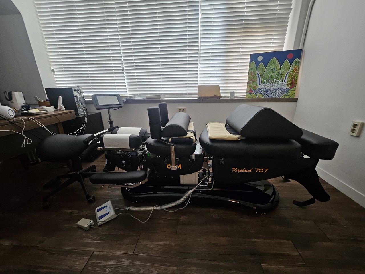 저희가 납품 Raphael 707-K는 드롭, 플렉션, 견인, 감압 등 다양한 치료기법을 통합한 비수술 척추치료기기로, 척추 교정과 재활 치료에 활용됩니다.
